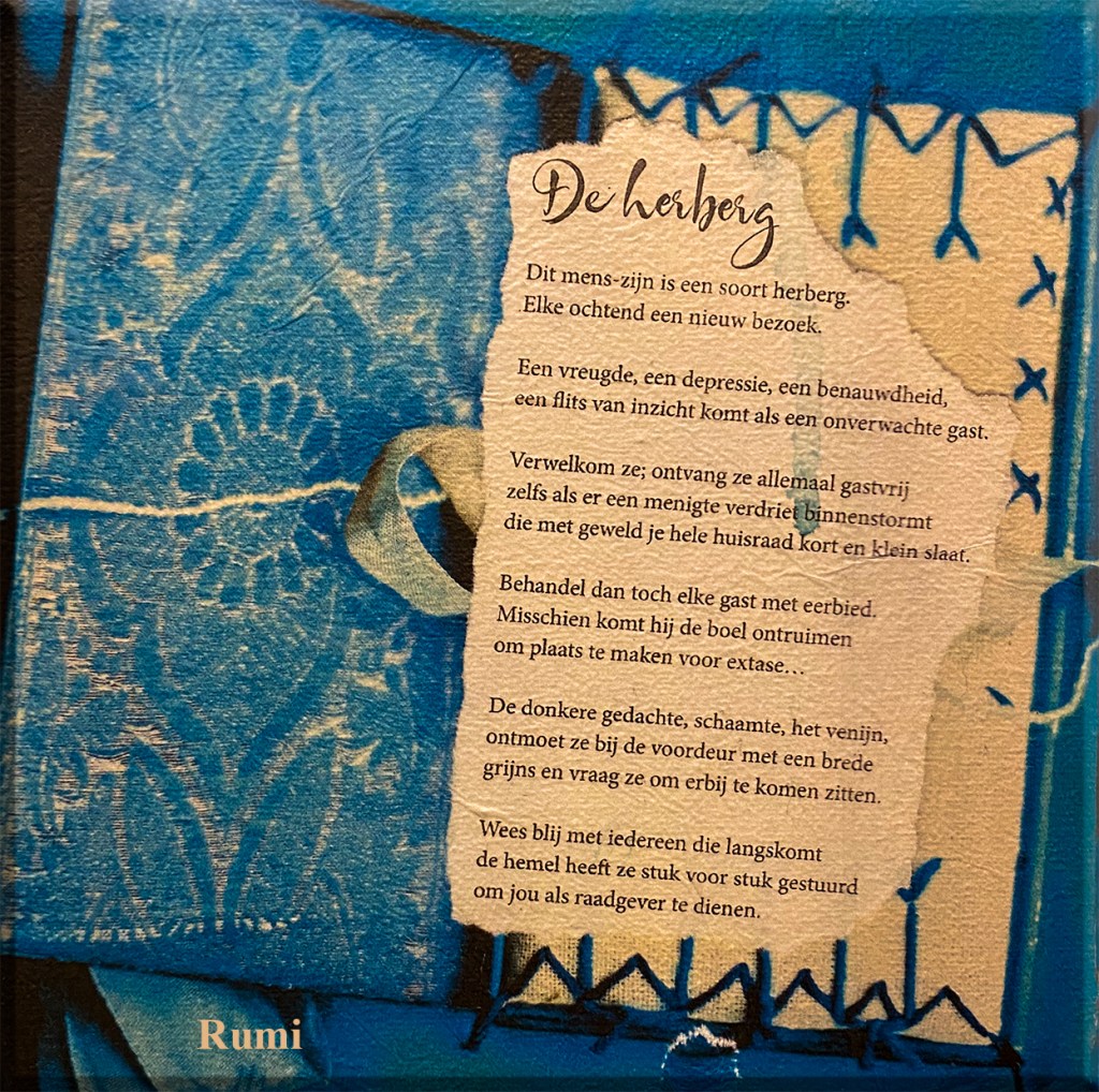 Ik vroeg aan mijn lief of mijn blogs niet té heftig waren. Hij zei toen dat wat ik schrijf de realiteit is. En dat klopt. Ik geef je een kijkje in mijn wereld. En ondanks alle narigheid, sta ik nog steeds positief in de wereld. Ik weet al jaren dat er vanuit het universum goed voor mij gezorgd wordt. Waar de ene deur dicht gaat, gaat een andere deur weer open. Het gedicht ‘de Herberg’, van de dichter Rumi hierboven, beschrijft precies wat ik beleef. In eerste instantie vond ik het verwelkomen van bepaalde personen of gebeurtenissen niet te doen. Toch heb ik gemerkt dat ze net zolang blijven aankloppen, totdat je ‘de deur open doet’. Pas toen ik (met hulp) onder ogen ging zien wat er aan de hand was, verdween het geklop en kon ik ze dus rustig in de stoel laten plaatsnemen. Zonder dat ik er dan nog wat mee moest doen. Wat een heerlijk gevoel! Achteraf zijn we zo wijs!