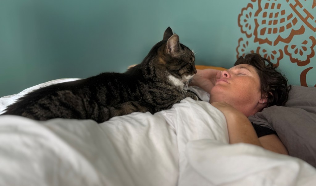 Gelukkig houdt kat Lytse mij van zeer dichtbij goed in de gaten, de lieverd!